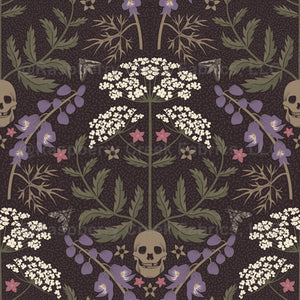Dark Academia Deadly Damask Poisonous Flowers hemlock deadly nightshade monkshood skulls brown green purple
