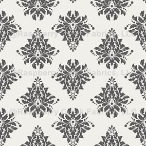 Dark Gray Damask on Ivory