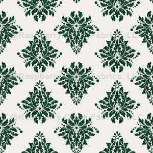 Dark Green Damask on Ivory