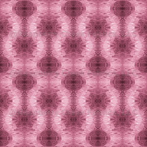 Created by mirroring a patch of rippling water, this abstract print in raspberry has the look of watered silk with a repeating design that reminds me of dark medallions.