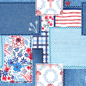 Denim, patchwork, floral, girls, women, summer, 4th of July, American, red, navy, white, blue, kids