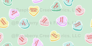 Valentines candy hearts with dental terminology and fun sayings