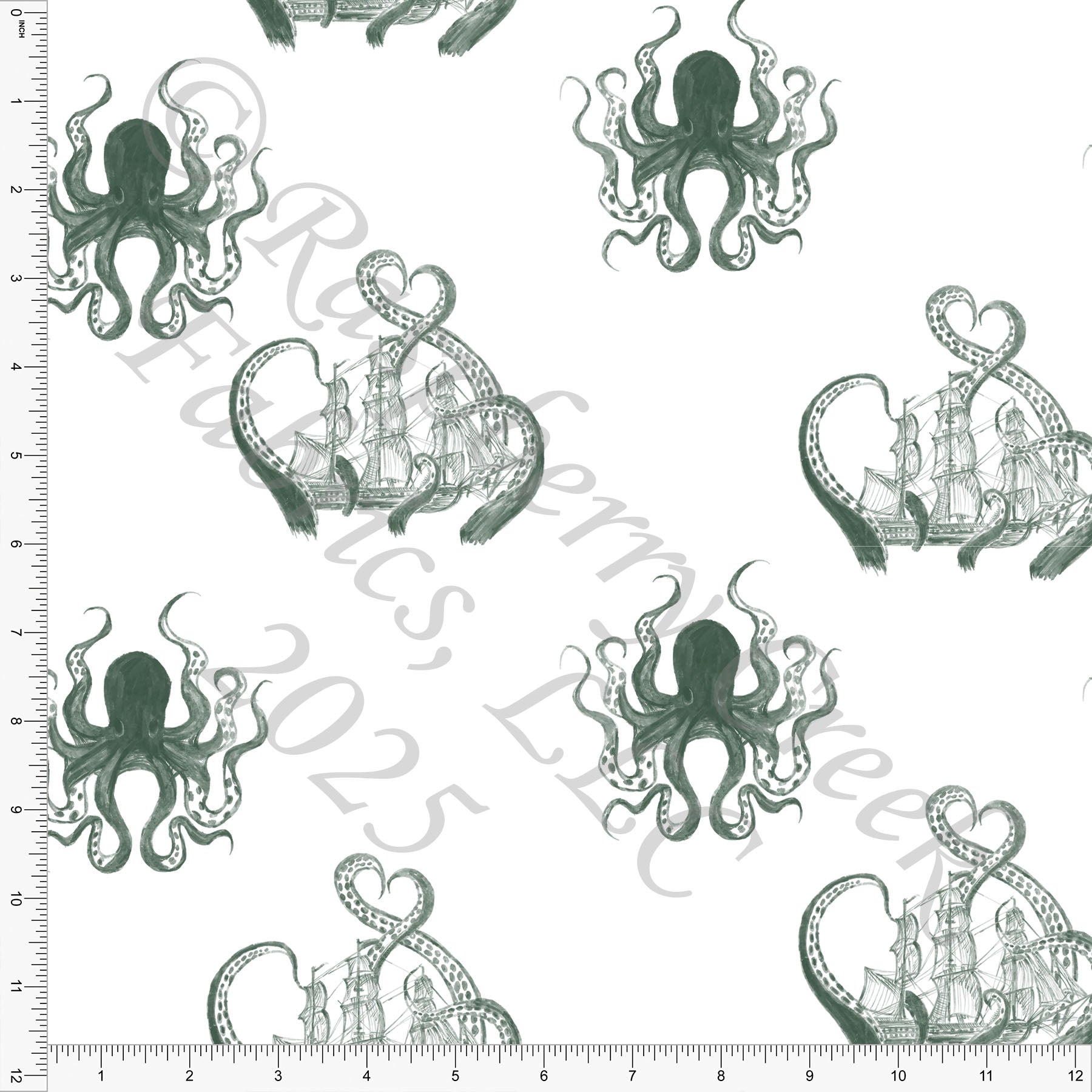 Depths Of The Sea Tonal Hunter Green Fishwife by Bri Powell for Fall 2025 CLUB Fabrics