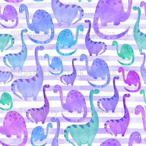 Dinosaur Stripe Purple Green Brachiosaurus Brontosaurus