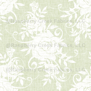 Distressed White Victorian Roses on Pale Sage Green Woven Texture / Victorian Roses Collection