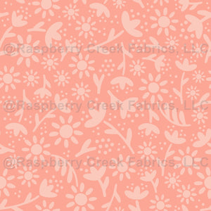 A hand-drawn ditsy, floral pattern in shades of pink and peach. Part of my Easter Fabric Collection at https://raspberrycreekfabrics.com/collections/studio-sunbow-studios
