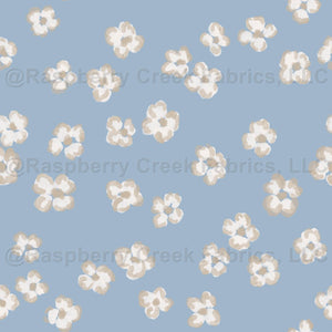 Ditsy floral, blue, tan, white floral, spring, tossed floral, flowers, minimalist, girls, women