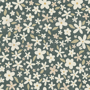 Ditsy Floral // Muted Dark Blue-Green // Linen Look //