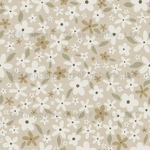 Ditsy Floral // Sage, Cream and Tan on Beige // Linen Look //