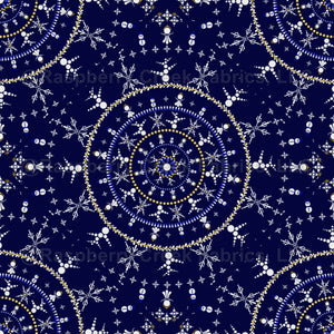 Scandinavian holiday vibes in our Ditsy Winter dot mandala in a geometric diamond tile pattern using colors from our Navy & Gold palette.