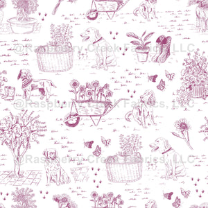 Dogs in the garden (pink on white) - Toile de Jouy wallpaper