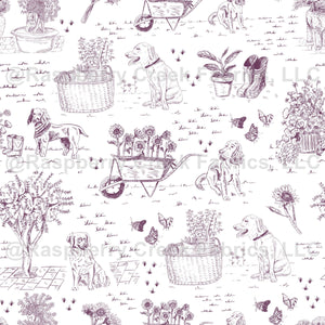 Dogs in the garden (purple on white) - Toile de Jouy fabric