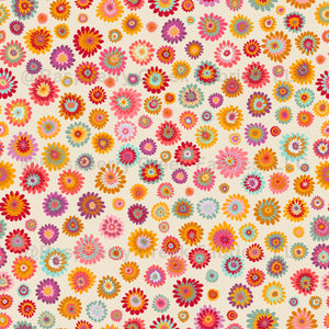 Hand-drawn doodle floral. Fun maximalist scatter design with bright contrasting colors on light tan.