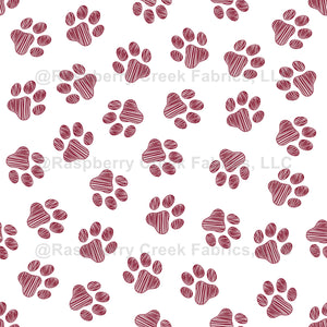 Cute, fun and adorable pattern with doodle paws in burgundy color on white background. Modern and trendy design, perfect for the dog and cat lover.