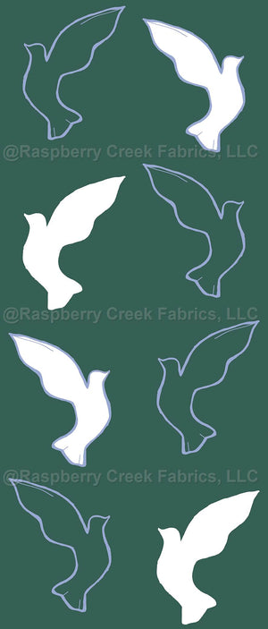 On a deep, radiant green, soft white dove silhouettes glide gracefully across the fabric — messengers of peace, hope, and quiet delight. Their serene flight evokes the still beauty of the season, the hush of snowy evenings, and the soft glow of holiday lights, wrapping every moment in gentle magic.