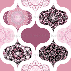 Mid century modern patchwork in this ogee cheater quilt pattern using dot mandalas from our Dusky Rose color palette collections.
