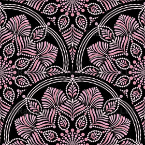Dusky Rose Fronds Dot Mandala Art Deco Scallop
