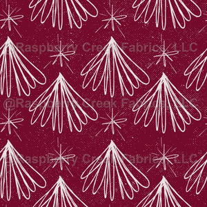 Dusty Christmas Trees Holiday Stars Bows - Red
