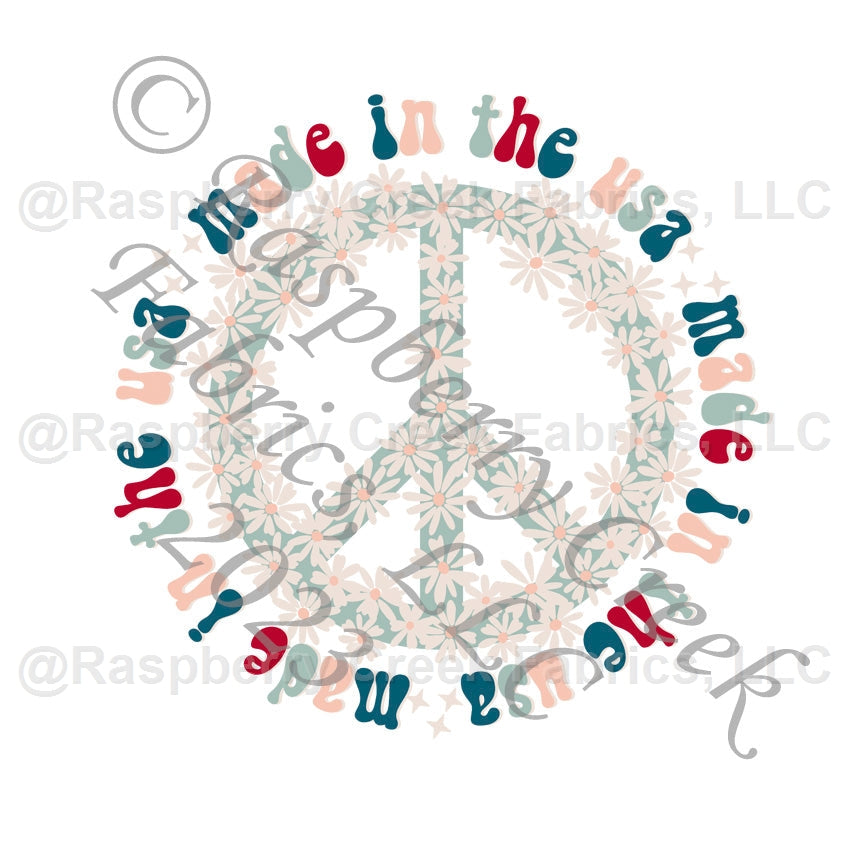 Dusty Mint Teal Red Peach Pink and Cream Made In The USA Peace Sign Panel, Americana by Kim Henrie for CLUB Fabrics