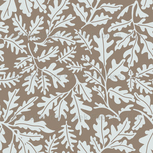 Oak leaves over a tan background.