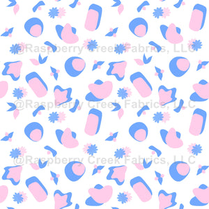 Playful blue and pink abstract effortless organic shapes with floral accents. Perfect for fabrics, kid‘s spaces or cheerful home decor project.