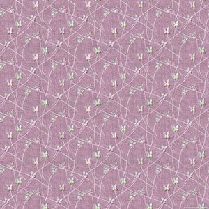 Delicate relief butterflies flutter across a dusty pink faux linen background. The embroidery effect adds depth and texture.