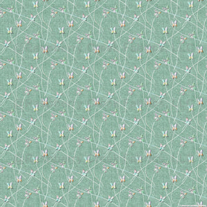 Embroidery Effect Watercolor Butterflies on Green Faux Linen Tiny