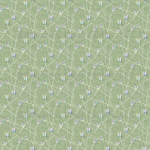 Delicate relief butterflies flutter across a lime green faux linen background. The embroidery effect adds depth and texture.