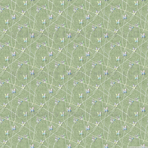 Embroidery Effect Watercolor Butterflies on Lime Green Faux Linen Tiny