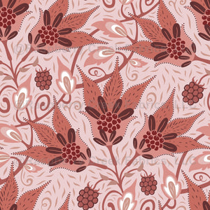 Enchanting flowering climbing vine stylized lilies Rosewood, Redwood on Rose Quartz. Enchanting collection.