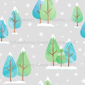 Evergreen Christmas Tree Forest Light Gray. Pretty green and aqua trees with snowflakes.