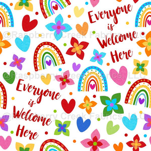 Everyone Is Welcome Here Rainbows Hearts and Flowers