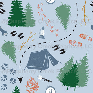 From the NEW Project Wild Side collection for Project Run and Play we have a new kids inspired outdoors inspired print with camping and hiking themed elements- tents, trees, tracks, etc. These designs are perfectly coordinated with the rest of the collection for fun mix and match options to create nature inspired children's clothing.