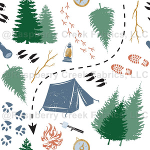 From the NEW Project Wild Side collection for Project Run and Play we have a new kids inspired outdoors inspired print with camping and hiking themed elements- tents, trees, tracks, etc. These designs are perfectly coordinated with the rest of the collection for fun mix and match options to create nature inspired children's clothing.