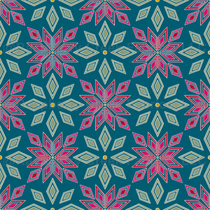 Geometric poinsettia flowers based on classic fair isle patterns for an updated twist - red, fuchsia, sage, on teal.