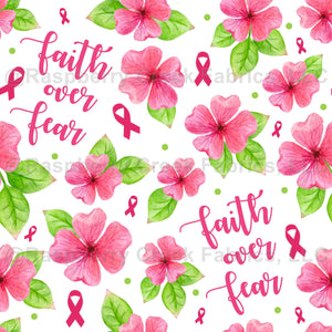 Faith Over Fear Pink Ribbon and Flowers Breast Cancer Awareness
