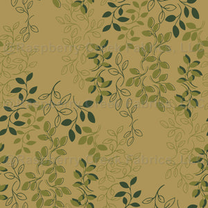 Falling, twisting vines and leaves in shades of green.