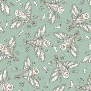 Hand-Drawn Bird and Floral Motifs in Muted Colorway (Blue)