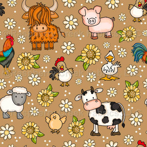 Farm Animals Daisies and Sunflowers Tan