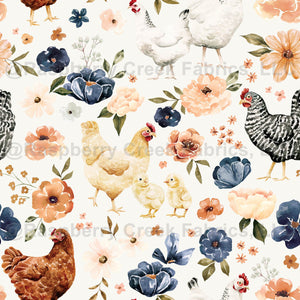 Farm and Meadow Farmhouse Country Chicken Floral on Cream