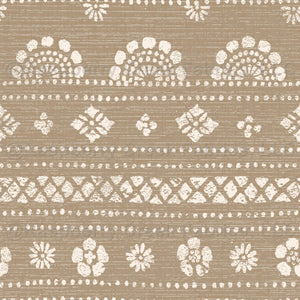 Farmhouse stripe, block print floral, linen texture look, Boho nursery, baby floral, neutral floral, beige and cream, scallop stripe, country floral, block print flowers, textural, light brown