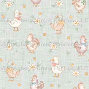 Farmyard Chicken and Duck Floral Mint