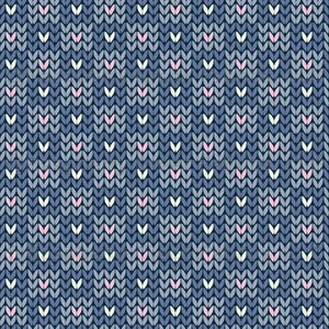 Faux Knitted Wool Checks Crafty Hygge Retro Dusty Blue with Hearts White Pink