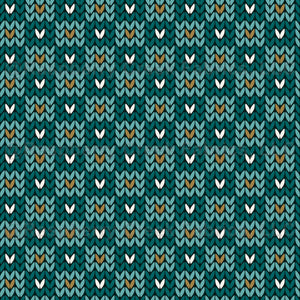 Faux Knitted Wool Checks Crafty Hygge Retro Teal with Hearts White Gold