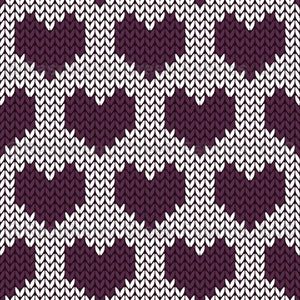 Faux Knitted Wool Hearts Hygge Nordic Warm Grandpa Style Purple on White