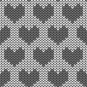Faux Knitted Wool Hearts Hygge Nordic Warm Grandpa Style Silver Grey on White