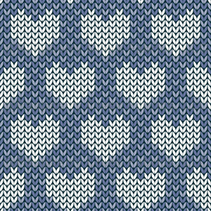 Faux Knitted Wool Hearts Hygge Nordic Warm Grandpa Style White on Blue