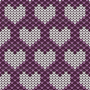 Faux Knitted Wool Hearts Hygge Nordic Warm Grandpa Style White on Purple