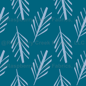 Feather and Pine in gray blue and sea green is a large botanical floral that repeats every 12 inches.  This design is from the Botanical Field Trip collection and is perfect for bold apparel and home decor.
