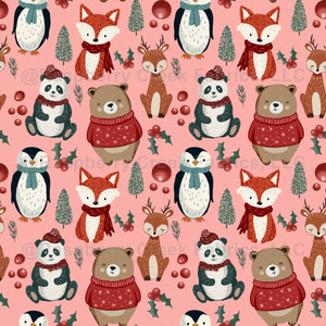 Festive Animals on Pink - Large